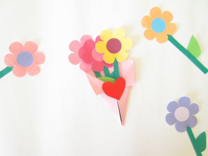Now, make each flower by sticking the stem, flower and leaf together as shown in the above picture.