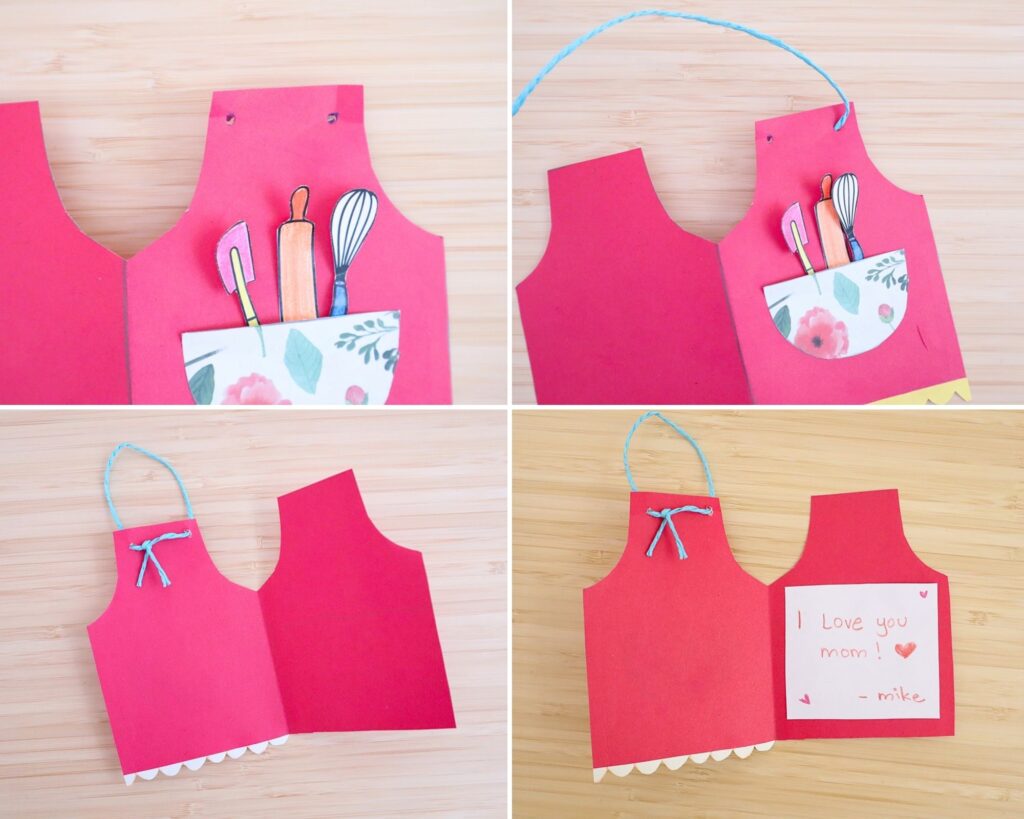 A handmade card always means more because it comes straight from the heart. This cute apron card lets kids combine creativity with a thoughtful message that moms will treasure.